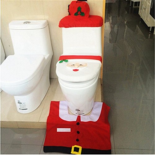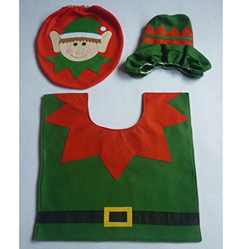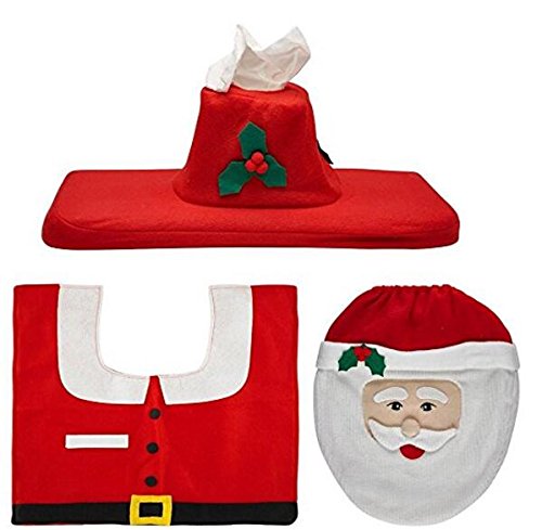 -. Feature : Blugibedramsh Trademark Registration Number: 86880309.Material:non-woven fabrics,Set includes: Toilet seat cover, tank cover, tissue box cover and colorful contour rug / Santa Claus Size: Toilet Cover:14" X 17", Tank Cover:15" X 8" X 6", Contour Rug: 23" X 22"; / Snowman(green) Size: Toilet Cover:14" X 17", Tank Cover:15" X 8" X 6", Contour Rug: 22" X 22" / Snowman(white) Size: Toilet Cover:14" X 17", Tank Cover:15" X 8" X 6", Contour Rug: 22" X 21" / Christmas Elf Size: Toilet Cover:14" X 17", Tank Cover:15" X 8" X 6", Contour Rug: 22" X 21"