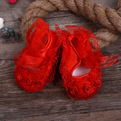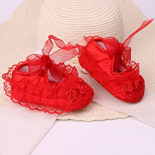-. Feature : Material:Lace&Cotton cloth. / Pretty non-slip baby girl Shoes with beautiful lace. / P.R.Incess style girl shoes, beautiful and fashionable. / Cute and soft, keep your baby wear comfortable. / 3 size available, Ideal for 3-6-9-12 month baby