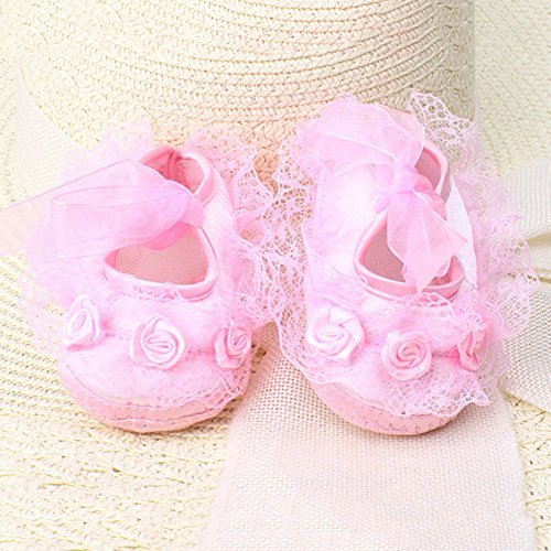 -. Title : Pinksee Baby Girl Lace Trim Lace-up Prewalker Non-slip Shoes