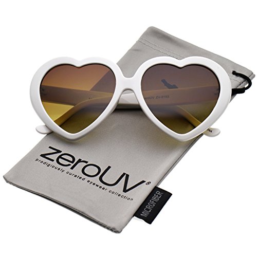 Sweet and cute, these heart-shaped sunglasses feature are designed in a variety of fun colors and an oversized silhouette. Accented with stylishly wide temples and neutral-colored gradient lenses, these darling sunglasses add a flirty touch to any look. Perfect for parties, music festivals, or Springtime, we are falling in love with these heart sunglasses. Made with a plastic based frame, metal hinges, and polycarbonate UV400 lenses. Lens Height: 50 mm | Lens Width: 55 mm | Bridge: 16 mm | Frame Total: 142 mmFeature