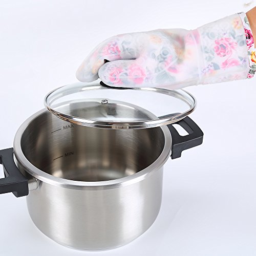 Professional Silicone Oven Mitts,460°F Heat Resistant Non-Slip Long Glovers With Thick Protection Cotton Lining Set Of 2 (1 Pair) (Red Flower)