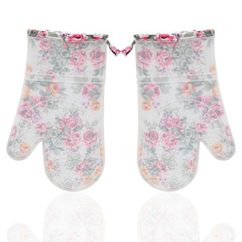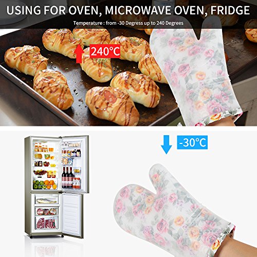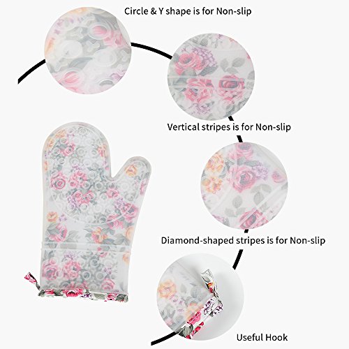 ANTI-SKID KICTHEN OVEN GLOVES: Heavy cotton lining adds comfort and protection, easy to wear or remove gloves,the glove's surface has a rough texture that can provide special grip to prevent food spilling.