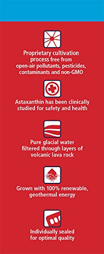-. Feature : ICELANDIC ASTAXANTHIN: Icelandic Astaxanthin delivers an antioxidant boost for unbeatable overall health, sourced from the purest Icelandic waters. / POTENT ANTIOXIDANT: Delivers potent antioxidant support, 6000x stronger than Vitamin C supplements to help control bodily inflammation and support joint health. / SUPPORTS OVERALL HEALTH: Supports brain, eye and cardiovascular health, strengthens the immune system and promotes everyday energy. / UNMATCHED PURITY: Cultivated and sourced from the purest Icelandic waters for unmatched quality, and completely free from pollutants, impurities, GMO's, gluten and soy. / BLISTER PACKS: Available in 12mg 30 Count blister packs - packed for optimal hygiene and guaranteed quality and provided in gentle, easily absorbed gelcaps!