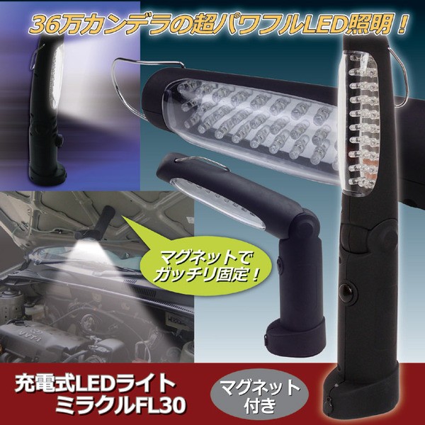 充電式LEDライト マグネット付き 角度調整可 連続点灯約2時間 ミラクルFL30