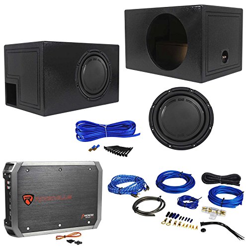 -. Feature : Package Includes: Polk Audio DB1242SVC 12" 1110 Watt Single 4-Ohm Car or Marine Subwoofer + Rockville RXA-T1 Car Amplifier 1500 Watt Peak 2 Channel Bridgeable + Rockville RWK81 8 Gauge 2 Channel Complete Wire Kit With RCA Cable + Rockville RQB12 Single 12" 1.8 Cubic Feet QBOMB Vented Subwoofer Enclosure + Single Enclosure Wire Kit With 14 Gauge Speaker Wire + Screws + Spade Terminals / Polk Audio DB1242SVC 12" 1110 Watt Single 4-Ohm Car/Marine Audio Subwoofer Sub . Driver Compliment: 12" (304.8mm). Cutout Dimensions: 11" (282mm). Mounting Height: 0.51" (13.05mm). Mounting Depth (Top): 4.34" (110mm). Mounting Depth (Bottom): 4.56" (116mm). Peak Power Handling: 1110 Watts. Continuous Power Handling: 370 Watts. Nominal Impedance: 4 Ohms. Frequency Response: 26Hz-200kHz. Sensitivity: 86 dB. / Rockville RXA-T1 1500 Watt Peak/750w RMS 2 Channel Car Stereo Amplifier . CEA Compliant Power Ratings: . 250 Watts (2 x 125 Watts) at 4 ohms and 1% THD+N . 370 Watts (2 x 185 Watts) at 2 ohms < 1% THD. 1 x 370 Watts bridged @ 4 Ohms < 1% THD. RMS Power Ratings . 750 Watts (2 x 375 Watts RMS) @ 2 ohms . 1 x 750 Watts @ 4 ohm Bridged Mono. 500 Watts (2 x 250 Watts RMS @ 4 ohms) < 1% THD. / Rockville RWK81 8 Gauge 2 Channel Car Amplifier Wiring Installation Kit. (1) 17 High Grade Twisted Pair of 100% Copper RCA Cable. 17 8 Gauge Translucent Blue SuperFlex Power Cables. 17 18 Gauge Blue Remote Cable. 17 16 Gauge Clear Speaker Wire. 3 8 Gauge SuperFlex Ground Wire. Gold Plated AGU Heat Resistant Fuse Holder. 60 Amp AGU Gold Plated Fuse. 7 Split Tube Loom. Accessories Included: Wire Ties, Ring Terminals, Butt Connectors, Spades, and Grommets . / Rockville RQB12 QBOMB Single 12" Vented Subwoofer Enclosure With Rhino Bedliner Finish. Proudly Made In The USA, Using Only The Finest Quality Materials - For The Best Level of Performance From Your Subs!. 3/4" USA Heavy Duty MDF Construction. Machine precision cut mounting holes. Top of the line Glue for extra durable adhesion. Designed, tested, and engineered to work with most of today's popular woofers.
