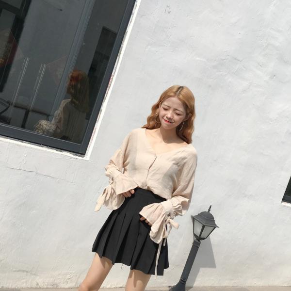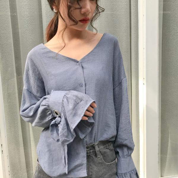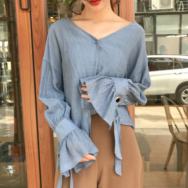 Vネックがポイントです♪ブルー、クリームの2色展開。