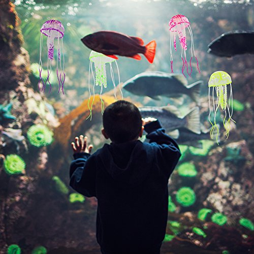 -. Feature : Jellyfish Fish Tank Aquarium Decoration - These ornaments capture the beauty and graceful movement of natural jellyfish which are nearly impossible to keep in an aquarium. / Environmental Protection Artificial Jellyfish Ornament - Soft silicone material is safe for all your fish. Nontoxic and odorless, no matter whether you have a freshwater or saltwater tank, our ornaments will never harm your fish. / Easy Installation Artificial Jellyfish - Simply apply the ornament to the tank wall or bottom; the jellyfish is tied by thin invisible line and suction cup. It has glowing effect under actinic lighting. / Colorful Sea World - Each jellyfish is 2.2 x 7 inches, pink, purple, blue, yellow, orange, and green 6 pieces of small jellyfish ornaments, it is great hiding place for tropical fish and adds interesting decor to any fish tank. / Artificial Aquatic Plants - Your friends will be astonished when seeing your aquarium and think they see a real jellyfish, it's your good choice to send a gift to your family and friends.
