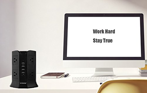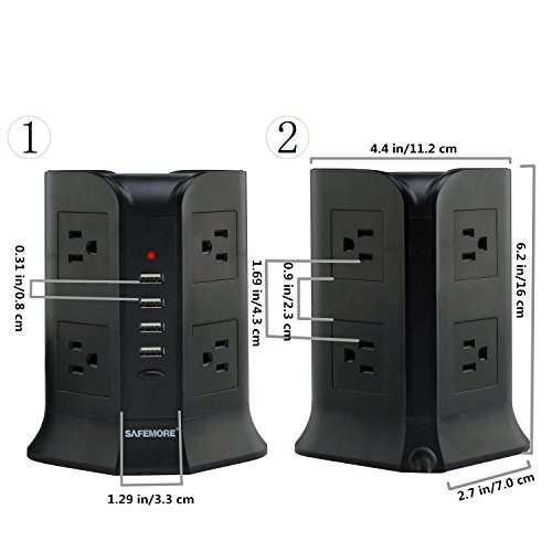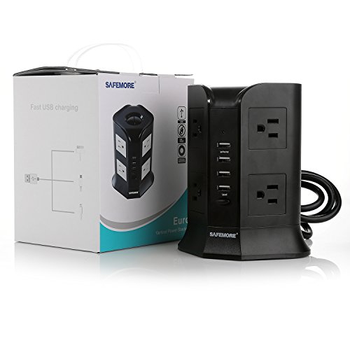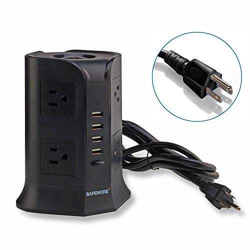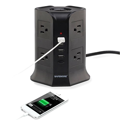 Safemore Charging Station with 4 USB, 8 AC Outlet and Power Cord 6.5 Feet (Black)