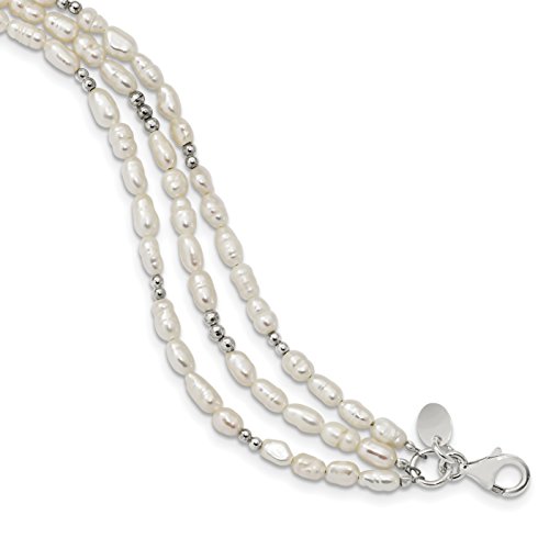 ICECARATS DESIGNER JEWELRY 925 STERLING SILVER FRESHWATER CULTURED PEARL 3 STRAND 1 INCH EXTENSION BRACELET 7.5 INCH
