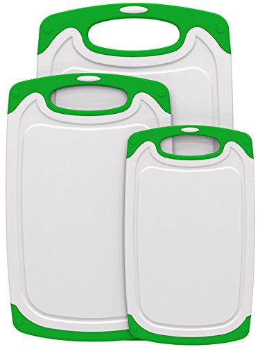 SPRING KITCHEN 3-PIECE DISHWASHER SAFE CUTTING AND CHOPPING BOARD SET. NON-SLIP SURFACE WITH JUICE GROOVE(GREEN).