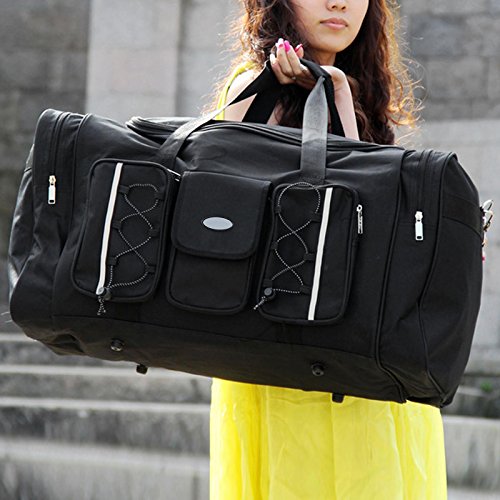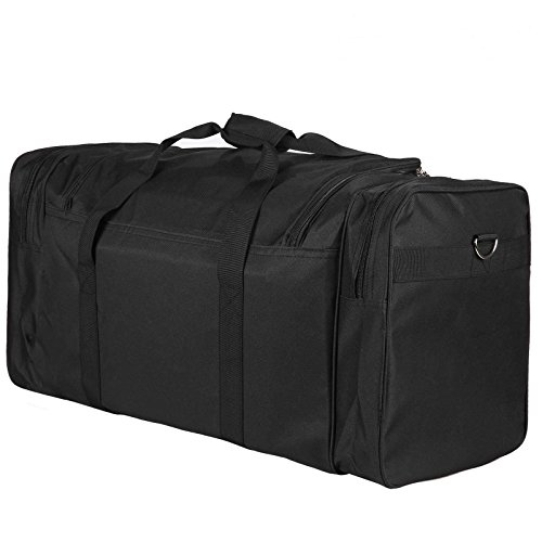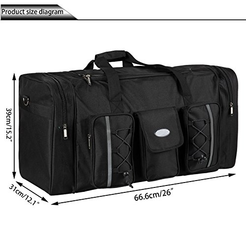 Item: Duffle Bags Feature: Waterproof Color: Black Material: Oxford Fabric Style: Tote bag Pattern: Solid Shape: Rectangle Occasion: Outdoor Gender: Unisex adult Closure Type: Zipper, Fastening Tape Design: Multiple pockets Weight Capacity: 50kg/ 110lbs Straps: 58cm/22.6inch Bag size: 66.5 x 39 x 31cm/26.0 X 15.2 X 12.1inch (L X W X H) 4 feet to help protect from dirt. Package Content: 1 x Luggage Bag Note: Due to the different light and monitor setting. Minor color difference maybe existed. Please understand and thank you very much.