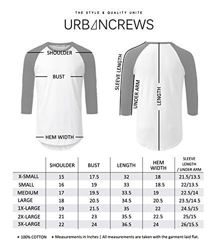 -. Binding : Apparel -. Brand : URBANCREWS -. Department : mens -. Feature : Machine Wash Cold with Like Colors / 3/4 Sleeve Crewneck Longline Raglan Baseball Tee / Longer Back Length / Comple with Rounded Hemline / Made in USA / Please Check the Size Chart (*Last Image*) Before Ordering | Please Note: Color May Vary Slightly From Image -. ProductGroup : Apparel -. ProductTypeName : SHIRT -. Title : URBANCREWS Mens Hipster Hip Hop 3/4 Sleeve Longline Raglan Baseball Tee Shirt