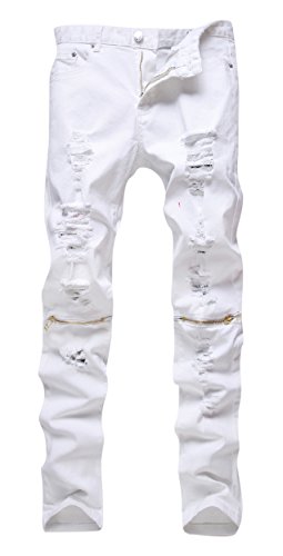 -. Binding : Apparel -. Brand : Qazel Vorrlon -. Department : mens -. Feature : Material: 90% Cotton + 10% Spandex / Fashion stretch jeans pants trousers for outfit at night or club / You can wear this jeans year in and year out which is never out of style / These jeans are comfortable to wear and offer mobility so you can move with ease without any restrictions like other skinny jeans / Denim Care: Machine wash cold, turn the jeans inside out and wash seperately with like colors. Do not bleach, gentle cycle, flat or line dry only. Lowiron if needed -. ProductGroup : Apparel -. ProductTypeName : PANTS -. Title : Men's Ripped Skinny Distressed Destroyed Straight Fit Zipper Jeans with Holes
