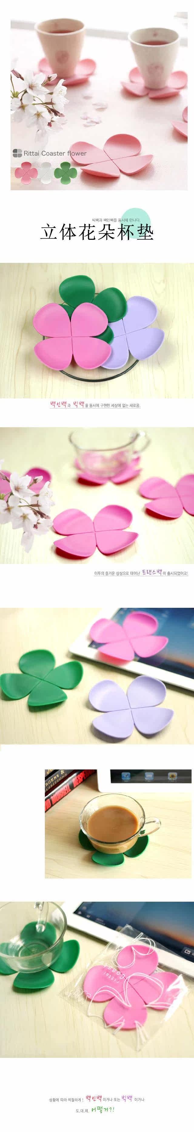 优雅立体四叶花硅胶杯垫 防烫碗垫 隔热垫 防滑垫子