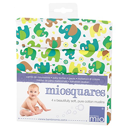 BAMBINO MIO MIO SQUARES MUSLIN SQUARES/BURP CLOTHS, ELEPHANT PARADE, 70 X 70 CM