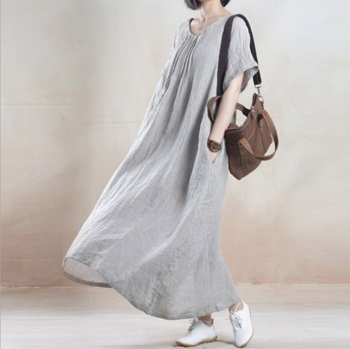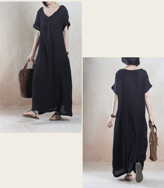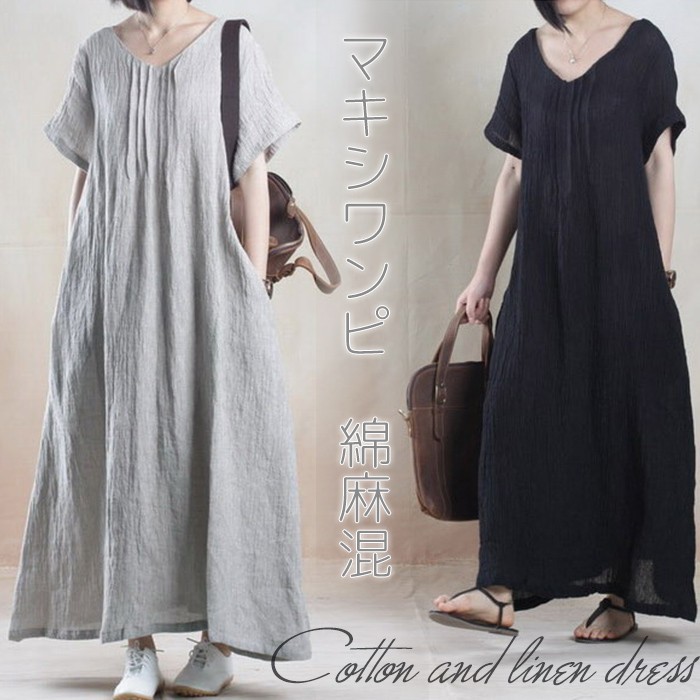 ★ご注意:こちらの商品はお客様がご入金後、メーカーから取り寄せさせて発送する予定です。ご入金からお届けまで約5-7日ほど時間がかかります。ご了承のほど、宜しくお願い致します。★素材表地:綿麻混生地の厚さ:薄手★カラー:黒 グレー※お客様ご使用のPC環境により商品画像のカラーが多少異なる場合があります。仕入時期により多少デザインなど異なる場合があります。ご了承ください。★サイズ:単位cmF:バスト110 ウエスト139 肩幅42 袖丈20 裾回し214 総丈114この商品は普段「Sサイズ」「Mサイズ」「Lサイズ」「XLサイズ」を着ている方にオススメいたします。※サイズは人の手によって測っているため、実寸は商品によって(2?3 cm前後)に誤差が生じる場合がございますので、予めご了承くださいませ。