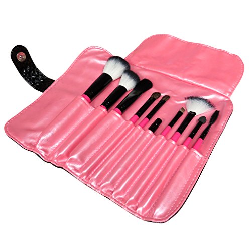 - This 10 piece cosmetic makeup brush set comes with a durable and stylish black shiny diamond patterned portable roll up case which will protect your makeup brushes.