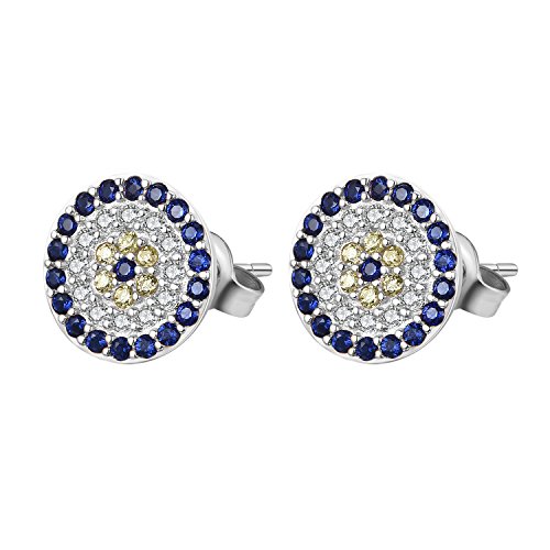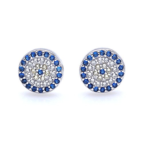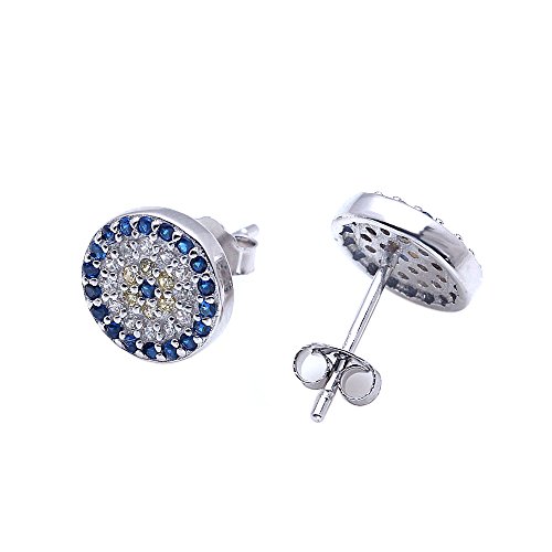 Eye Plate Size: 9.6x9.6x2mm, Pin Length 10mm; Stone: Blue CZ dia.1.5mm x38pcs, Champagne CZ dia.1.5mm x12pcs, White CZ dia.1.5mm x24pcs, ttl wt.0.15g.