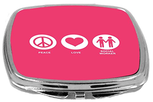 Rikki Knight Peace Love Social Worker Design Compact Mirror, Tropical Pink, 2 Ounce