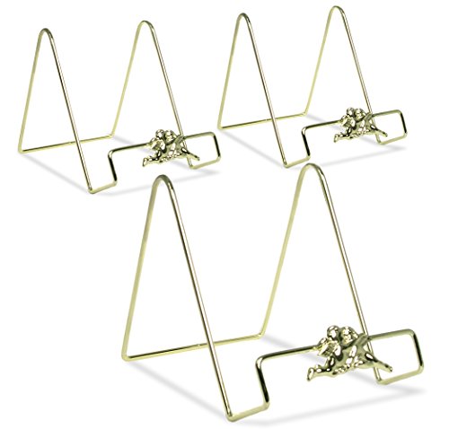 -. Feature : SET of 3 Solid Brass Wire Display easels. Cherub angels give it an antique vintage old fashioned look. / SIZE: 6"H / BRASS FINISH: Classy, elegant, sturdy and stable. High gloss and virtually non-tarnishable / DECORATIVE USES: Great tabletop easel for displaying large collectible plates, picture frames, decorative coasters, tiles, plates, plaques, awards, certificates, collectible books. Great way to display items for kitchen home decor. Display purposes for wedding ceremony, reception party and events. / COLOR: Gold