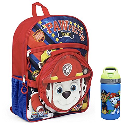 -. Feature : Full size backpack (16"H x 12"W x 5"D) / Marshall character lunch bag, detachable / 16 oz. BPA free water bottle with flip top straw / Chase, Rubble, Zuma Paw Patrol puppy characters / Great gift for kids school, travel, camp or sleepover