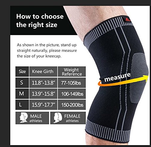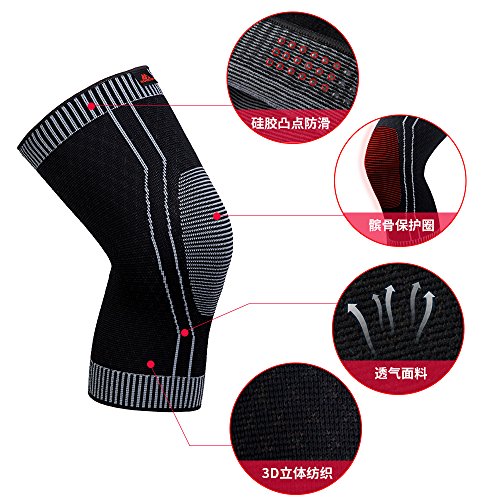-. Feature : √PAIN RELIEF JOINT PROTECTION: Keep warm and reduce pain, soreness, inflammation, stiffness. Recover faster from arthritis, tendonitis, post-surgery, swelling as well as strains and sprains. / √GRADING PRESSURE SUPPLY: Standard pressure supply is provided for grading pressure supply to mimic tissue of the muscle group. Also, different kinds of pressure are provided to different locations owe to different weaving methods. / √SILICONE SPOT: There are silicone spots which have excellent adsorption at the top of the knee brace preventing falling and displacement. / √BREATHABLE ELASTIC FABRIC: The breathable material has good air permeability and efficient perspiration, which also features softness, fitness, strong ductility. Comfortable and is not too tight. Deformation is not easy to form through stretching with the new compiling technology. / √DELICATE AND DURABLE: Being delicate and durable, wearing comfort can be improved with the hot-press seamless technology. Also, reduced edge pressure can disperse the knee loads.