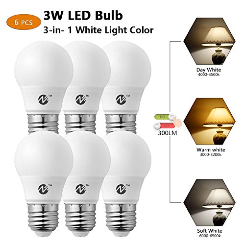 Zeben Lighting LED Bulbs E26 E27 Screw Base 3W 3-in- 1 White Light Color Non Dimmable LED Bulbs 25W Equivalent Led Bulbs Pack of 6