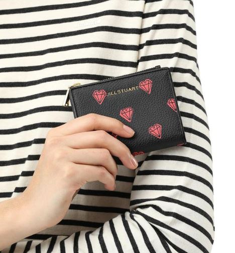 핑크 컬러의 질 스튜어트 하트 다이아몬드 패턴으로 귀여운 반지갑입니다.