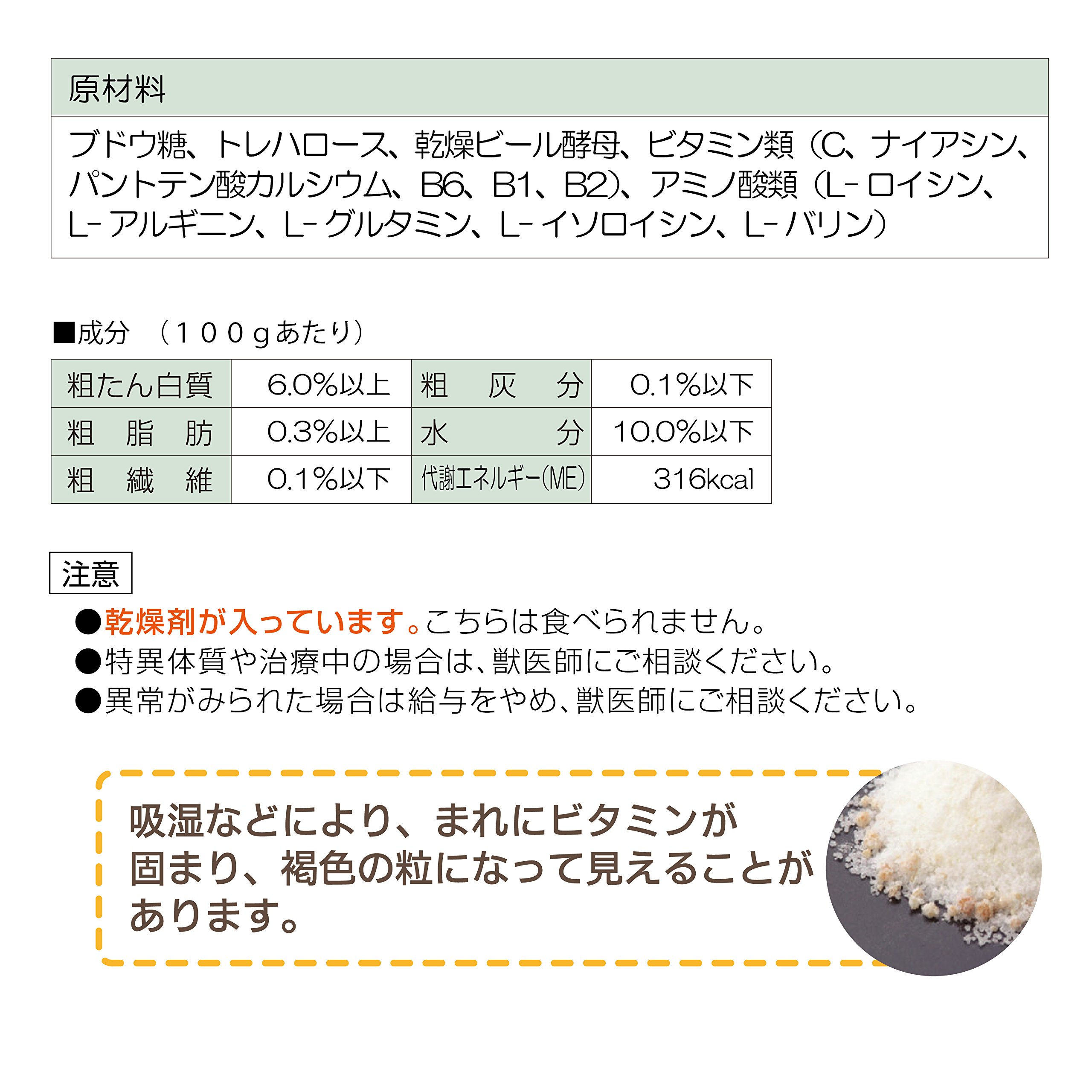 This product contains not only sugar, but also amino acids, vitamins, brewer's yeast, it is effective when you want to supplement the body with sugar, from beginning to keeping until you get used to your house or before and after intense exercise.