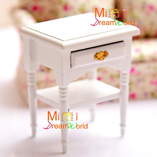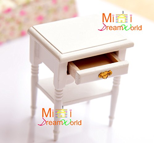 (Minidreamworld)/Dolls/Accessories/DIRECT FROM USA/1:12 Dollhouse Bedroom Furniture White Bedside Table Living Room Cabinet