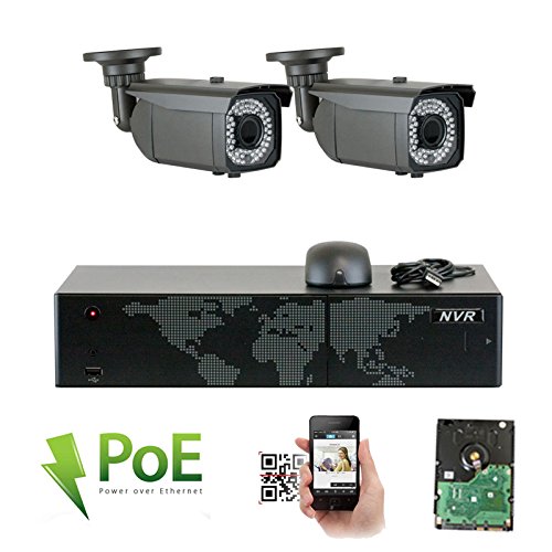 8 Channel Full HD Max up to 5.0 Megapixel NVR with (2) 5MP 1920P 2.8~12mm Varifocal Manual Zoom POE IP Cameras (Recording HD 1920p/1536p/1080p Resolution Video per channel)