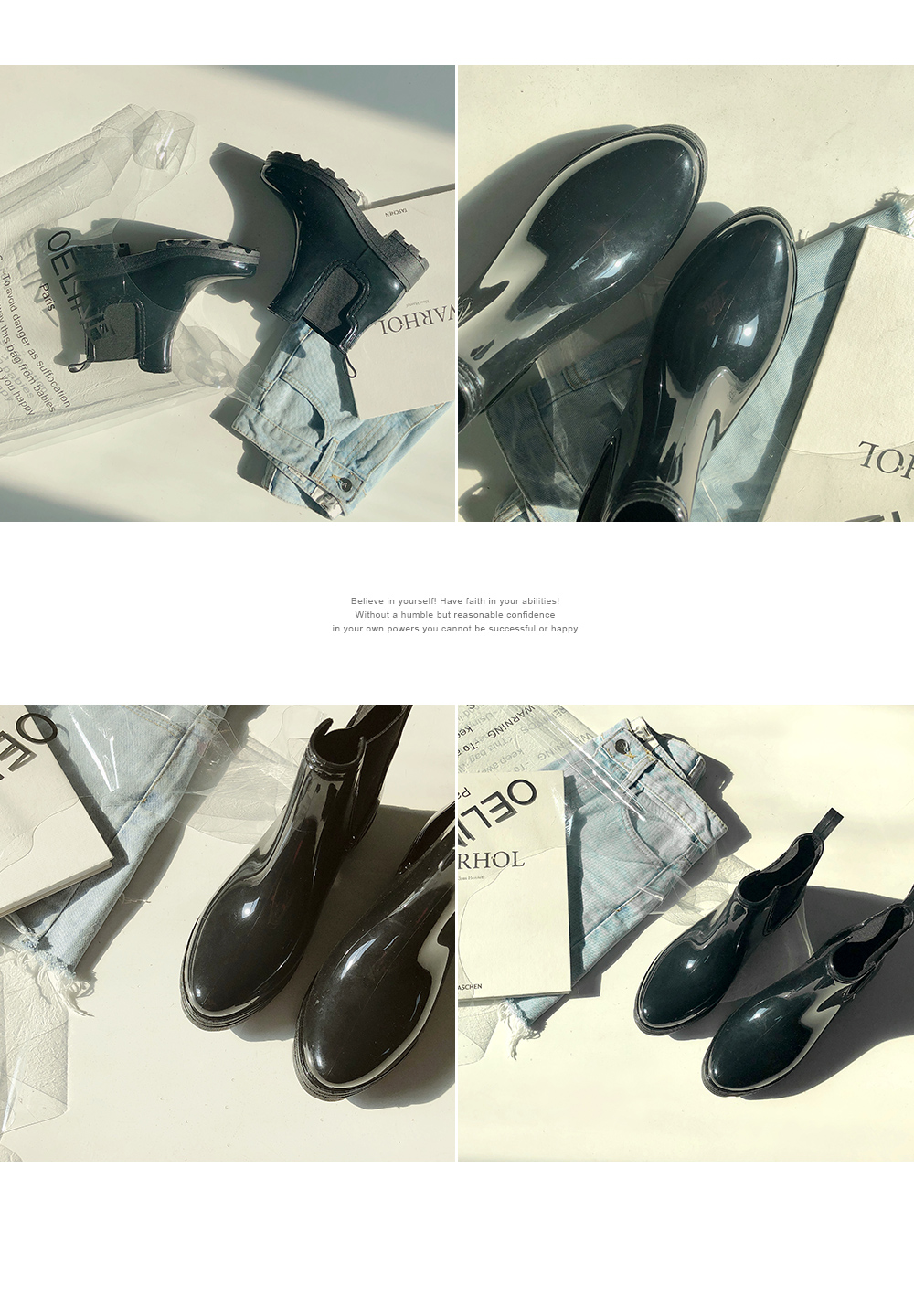 광택감이 아름다운 레인부츠입니다.