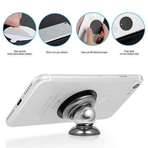Details treatment 3M adhesive tape for stronger adhesion and won't fall off easily. White electrostatic sticker provided between the metallic plate and your devices for easy removal from your devices. Protective silicone ring and rectangle metallic plate with terry cloth on one side protect your devices from scratches. PLEASE mount the phone holder on a flat and clean surface.