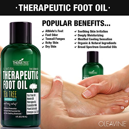 BROAD SPECTRUM - Enriched with Tea Tree Essential Oil, Broad Spectrum Essential Oils, and Antibacterial Extracts Including Neem Oil that have been used for centuries for Skin Discomfort, Oleavine Foot Oil helps provide relief.