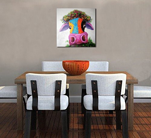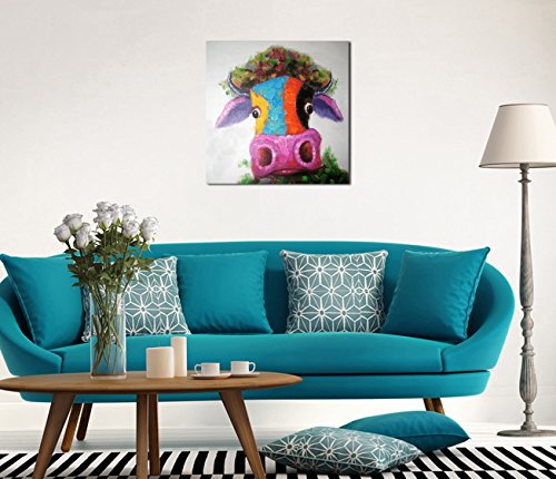 Pop art painting on canvas,bright and multiple colors,cute little cow/bull's head with cute big nose