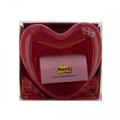 1 X Post-it Red Heart Pop-up Note Dispenser - 3" x 3" - Holds 50 Sheet - Red Heart