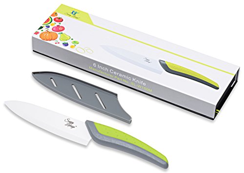 NanoRazor Professional Gourmet 6-inch Ceramic Chef's Knife - Various size (8", 6", 3") and color knives available to make your own set and save big - The most durable ceramic blade on the market by Savvy Living [ White ]