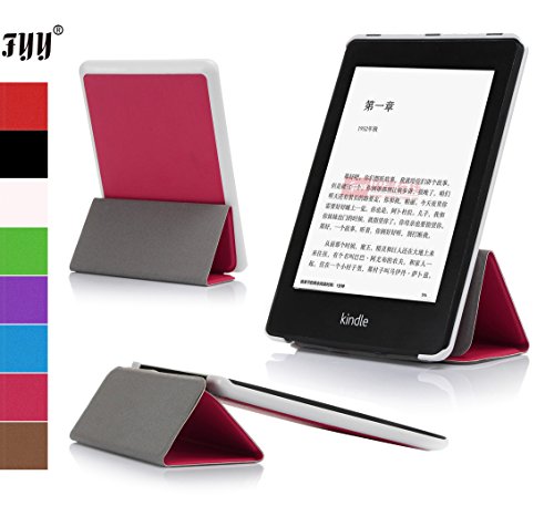 - Feature : Made with premium PU leather exterior and no-scratch microfiber interior. The back cover combines both hard shell and supreme PU leather, which is very distinctive. The product is endowed with fine texture and comfortable tactile impression. / Adjustable stand with two viewing angles. Easily converts into typing and landscape modes. Perfect for video-chatting and movie-watching. / Built-in magnetic strip provides auto sleep / wake feature. Automatically wakes or puts your device to sleep when the lid is opened and closed. The magnetic clip boasts durable magnetic force, snaps on easily when closed. / Ultra slim lightweight, high quality, fashion design, easy access to all ports and controls. / Specifically made for Amazon All-New Kindle Paperwhite (Both 2012 and 2013 versions with 6" Display and Built-in Light). Available in a variety of bright and fun colors. This product is sold exclusively by FYY. Only buy from FYY to get genuine FYY (TM) products with manufacturer warranty and world-class customer service.