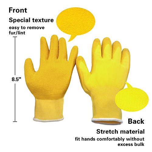 unique texture designed surface will help you to removing unwanted pet fur and lint. from your cloths,funiture and bed fast and easily just with simple swipe. the stretchable matrial on the back part fit most average hands,let your work comfortablely.