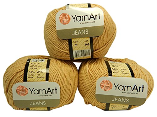 YarnArt Jeans Cotton Blend Yarn 3 Ball Lot (Beige)