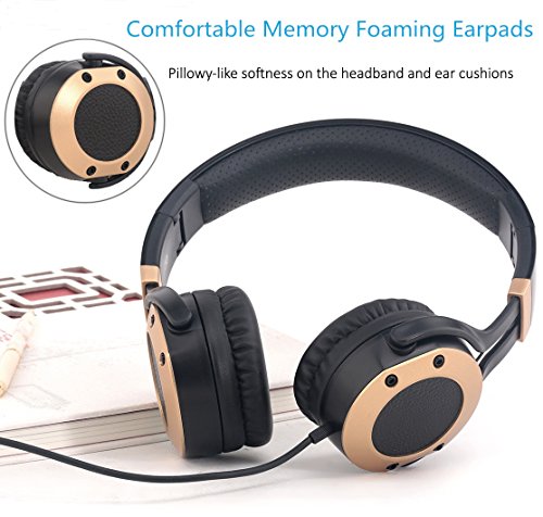 SUPER COMFORTABLE: Adjustable headband, skin texture memory foaming ear pads, lightweight around-ear fit for different head sizes, you can wear all day long. Tips: please take off the headphone in every 2 hours to get your ears relax and to get a better hearing enjoyment.