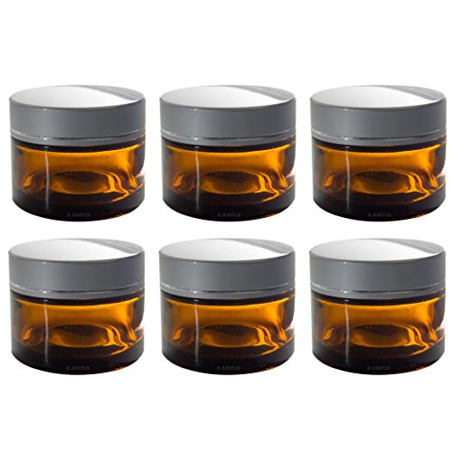 Amber Glass Thick Wall Balm Jars with Silver Matte Smooth Lids - 1.35 oz 40 ml (6 pack)