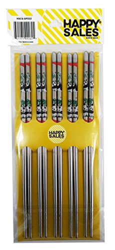 Happy Sales HSCS-SPD22, 5 Pairs Panda Stainless Steel Chopsticks