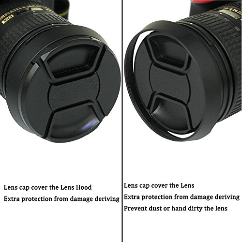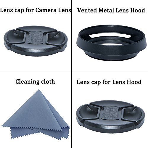 SIOTI 72mm Camera Tilted Vented Metal Lens Hood + Cleaning Cloth + 2pcs Lens Cap(72mm suit for Lens,77mm suit for Lens Hood) for Standard Thread Lens
