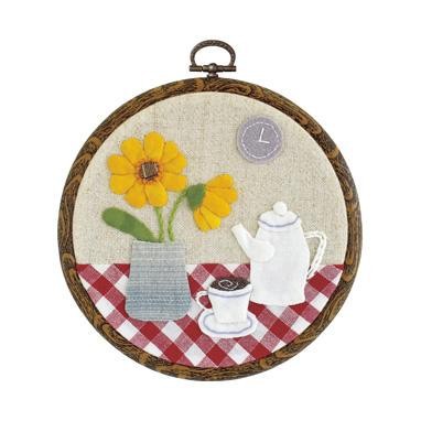 アップリケとししゅうで作るインテリア壁飾り。専用フープ付。技術レベルは初級~中級者向です。