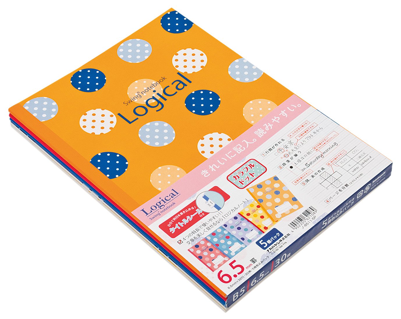 Special design with a "written title sticker"! "Colorful dot" / pop dot pattern, learn brightly with bright color! ● With subject title seal, you can write subjects yourself.