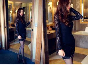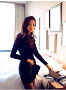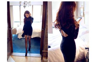 レースタイトワンピース ミニ丈ワンピース バックデザイン セクシー 長袖 タイト マイクロミニ丈 フラワーレース プチプラ