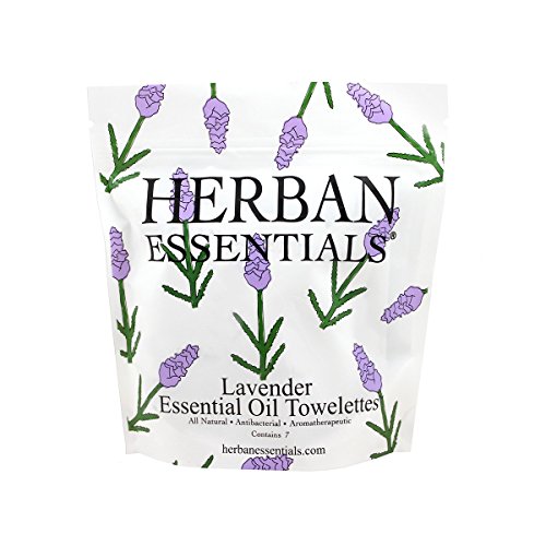 - Lavender essential oil towelettes, contains 7 individually wrapped towelettes