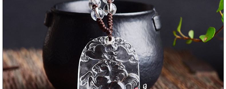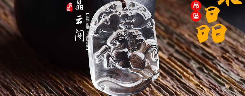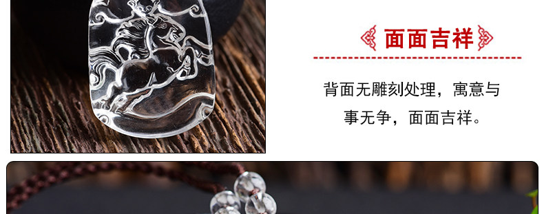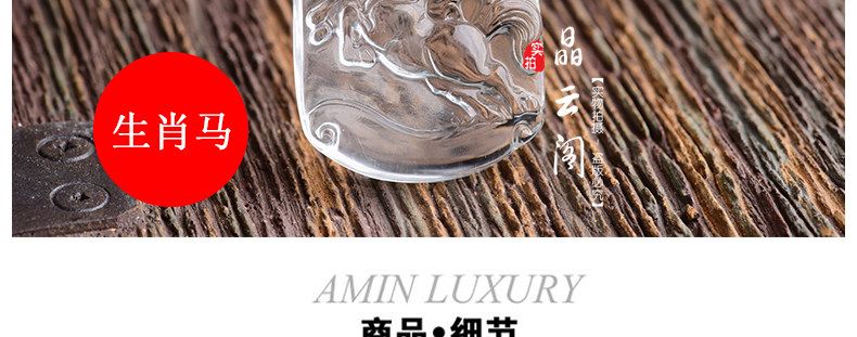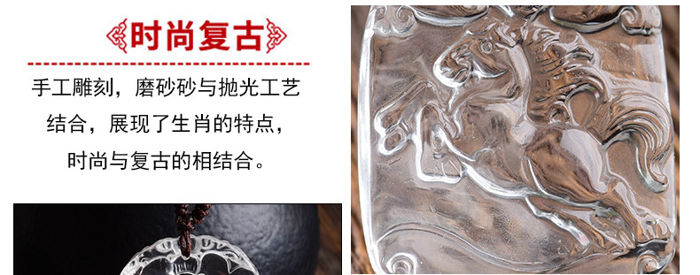 开光天然白水晶十二生肖属马吊坠 男女款项链挂坠情侣款饰品挂件