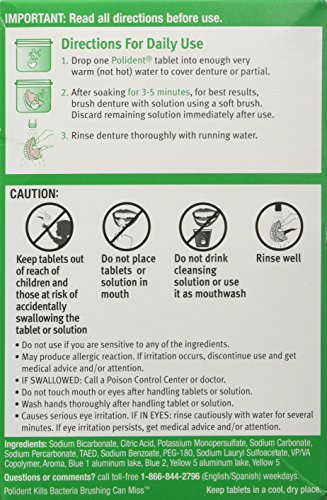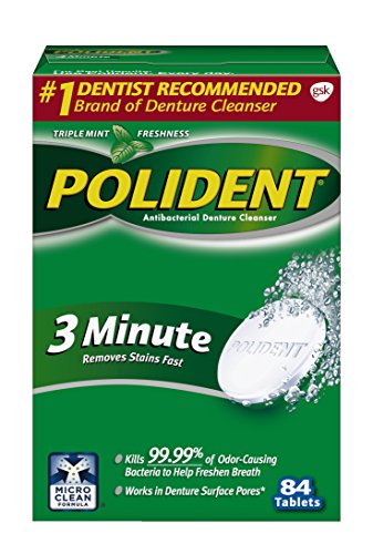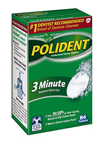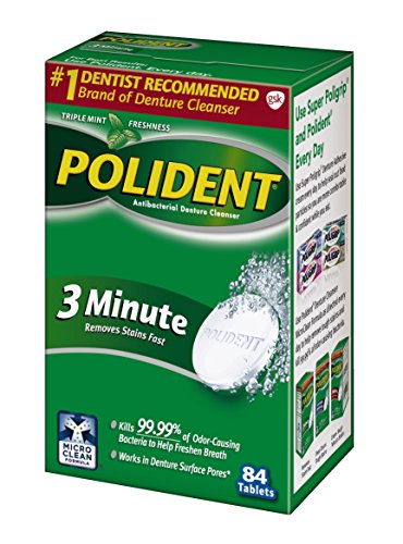 Polident 3-Minute Anti-Bacterial Denture Cleanser Tablets, Triple Mint Fresh, 84 Count (Pack of 3)
